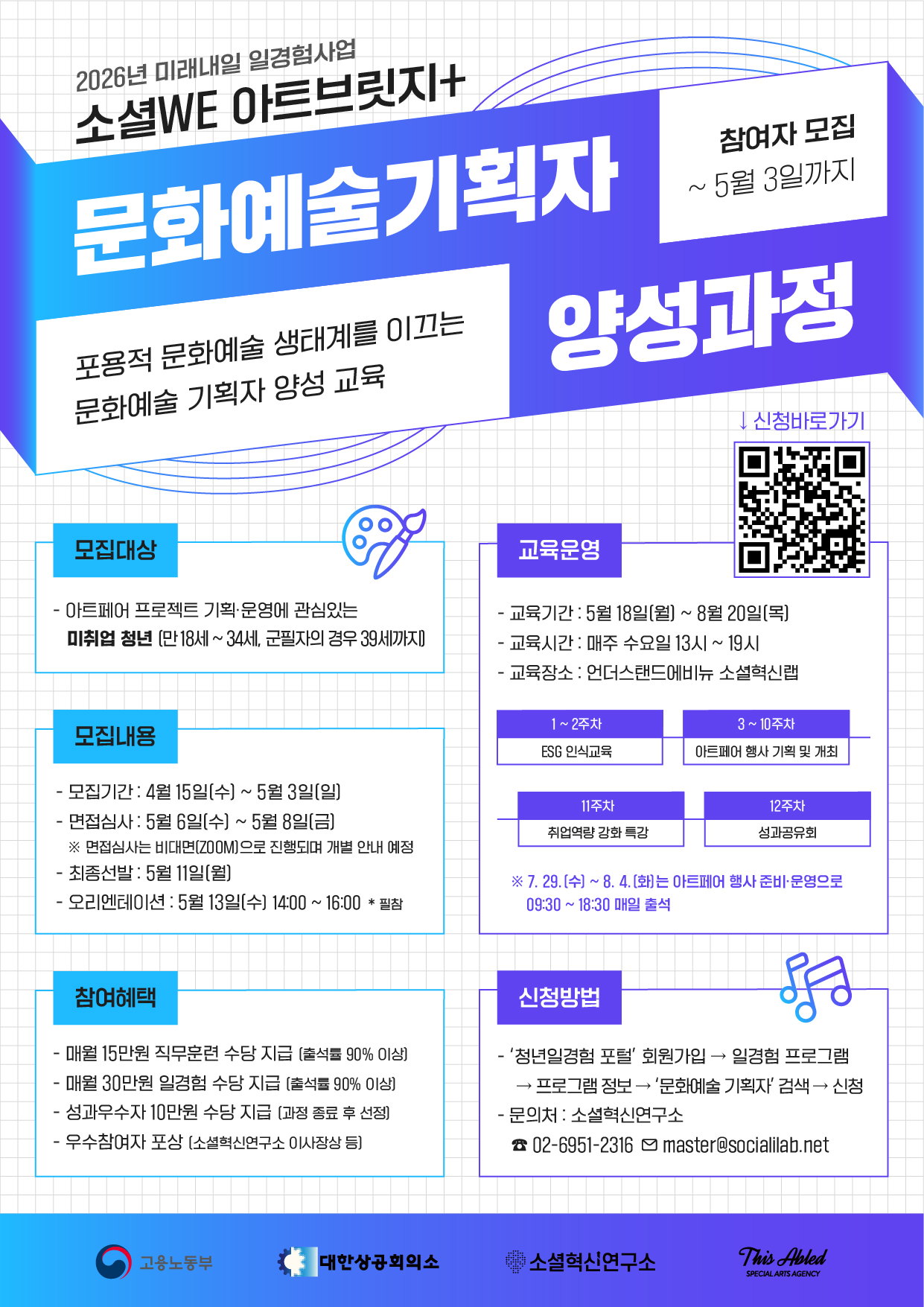 [¸ðÁý] 2026³â ¹Ì·¡³»ÀÏ ÀϰæÇè(ESGÁö¿øÇü) ¼Ò¼È WE ¾ÆÆ®ºê¸´Áö+ ¹®È¿¹¼ú±âȹÀÚ ¾ç¼º°úÁ¤ ¸ðÁý