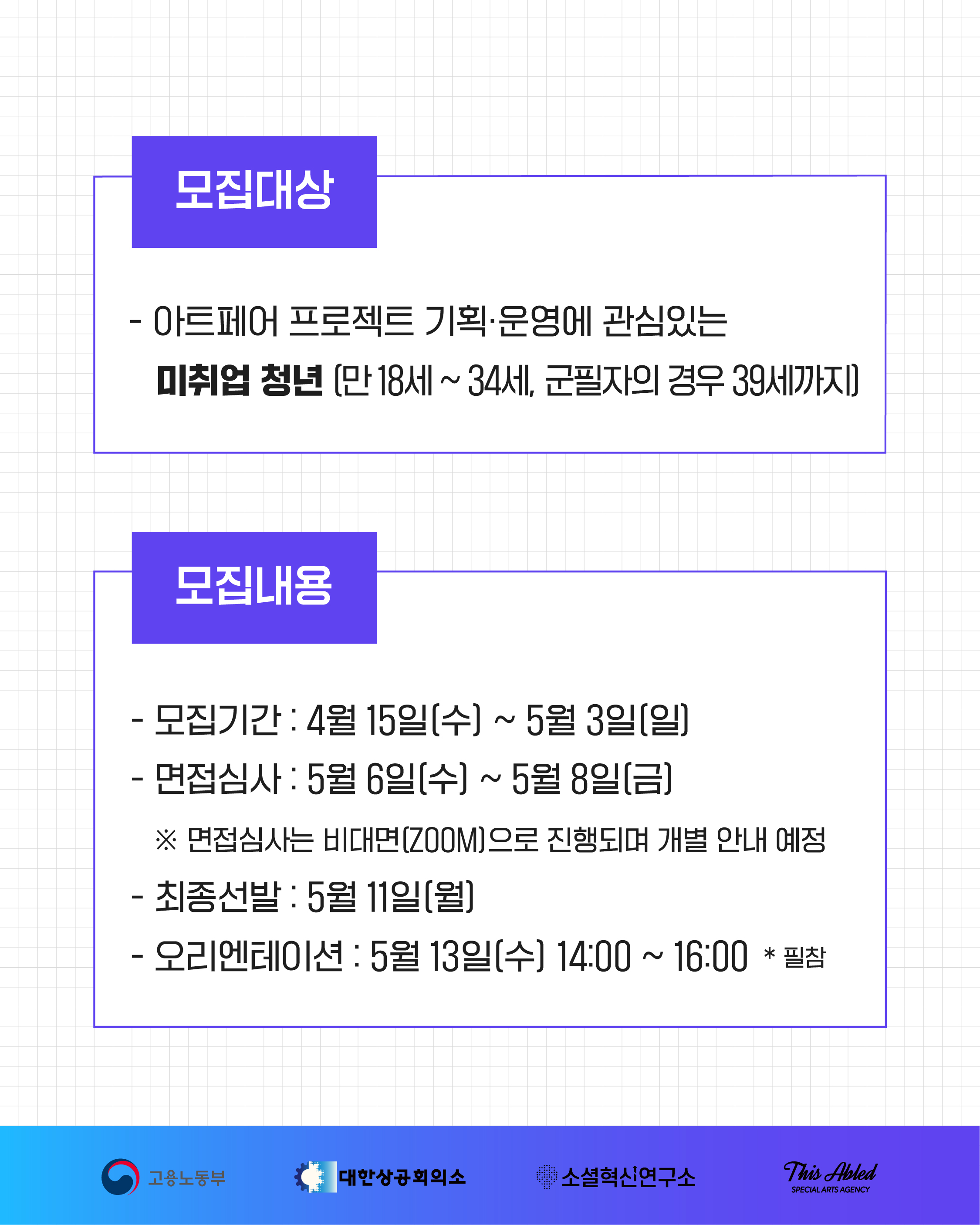 - ¸ðÁý ´ë»ó: ¸¸ 18¼¼ ~ 34¼¼ ÀÌÇÏ ¹ÌÃë¾÷ û³â 15¸í