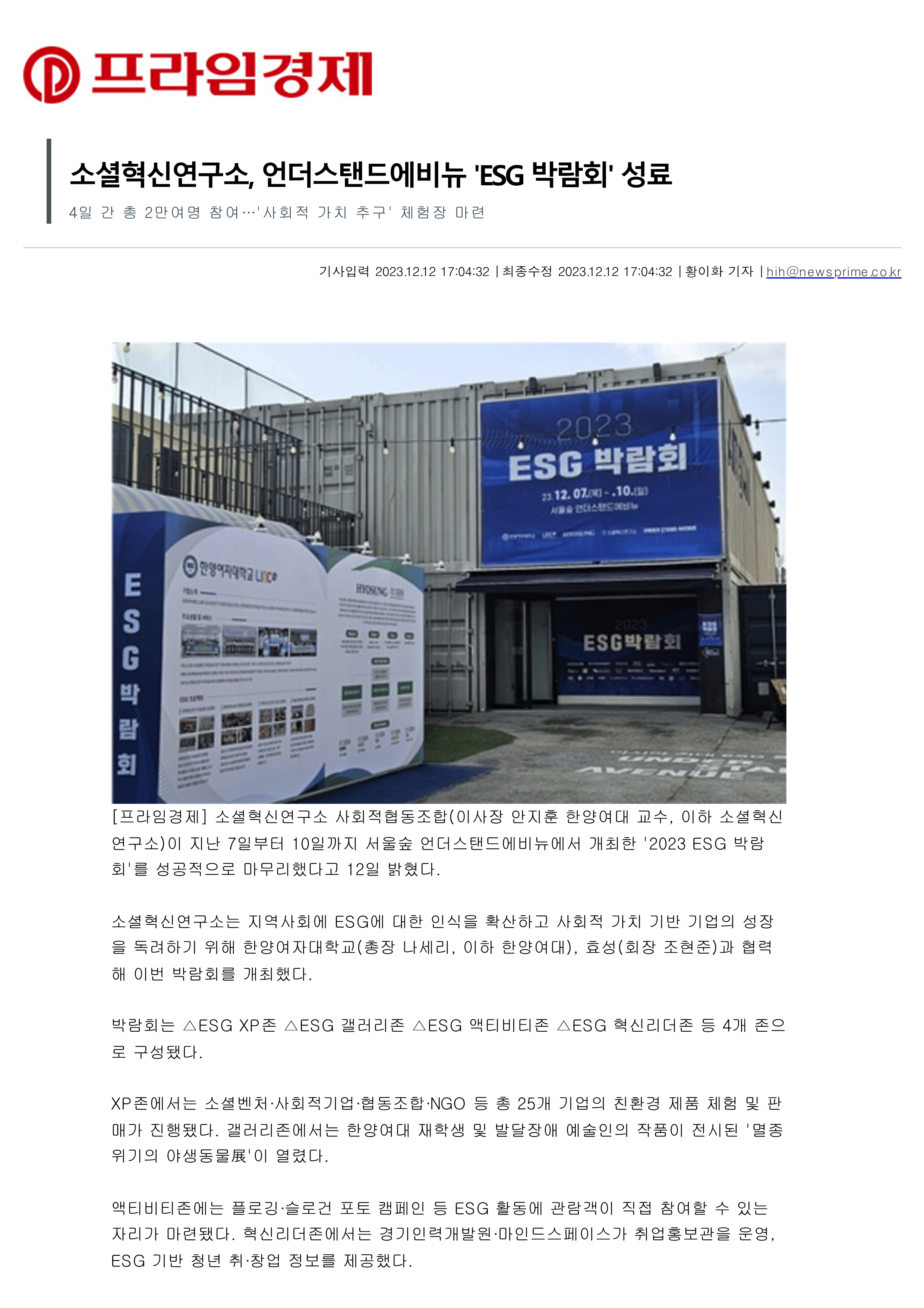 '¼Ò¼ÈÇõ½Å¿¬±¸¼Ò'°¡ °³ÃÖÇÑ '2023 ESG ¹Ú¶÷ȸ' ¼º·á°¡
