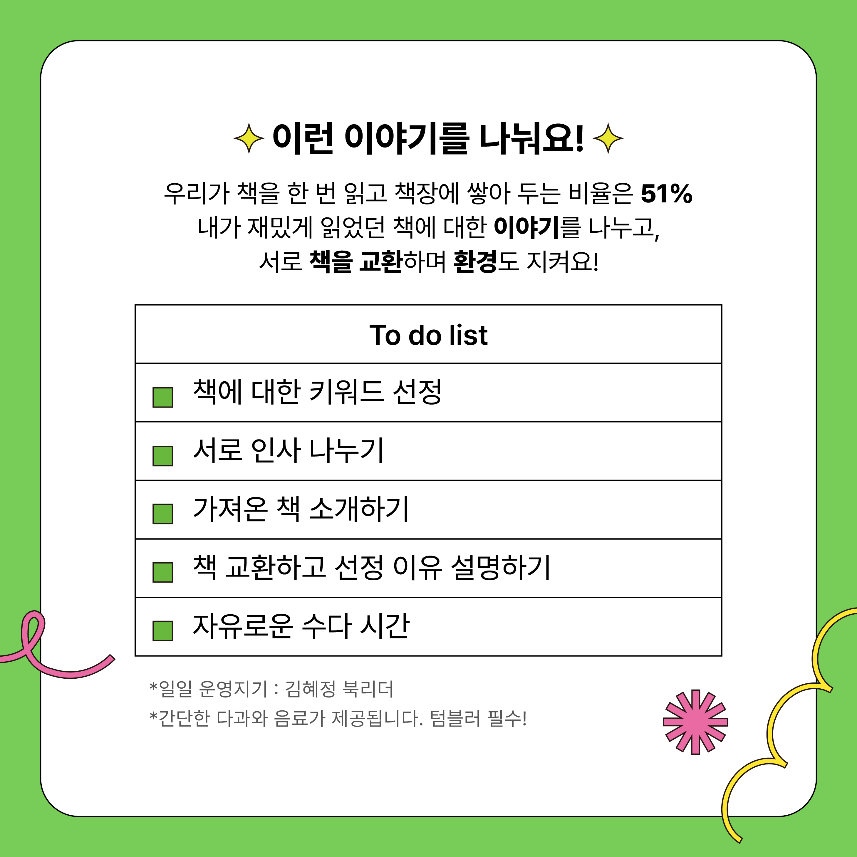 ❇️Âü°¡ÀÚ ¸ðÁý❇️ <³ª´©´Â º½, 51% ³Ê¿Í ³ªÀÇ Ã¥Àå °øÀ¯> 10¸í❗️Âü°¡ºñ ¹«·á❗️