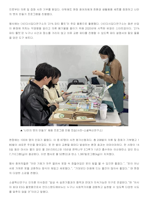 ¾ð´õ½ºÅĵ忡ºñ´º <³ª´©´Â º½, 21% ¿ì¸®µéÀÇ ¿ÊÀå °øÀ¯> °³ÃÖ ¼Ò½ÄÀÌ '»çȸÀû°æÁ¦´º½º'¿¡ º¸µµµÇ¾ú½À´Ï´Ù.