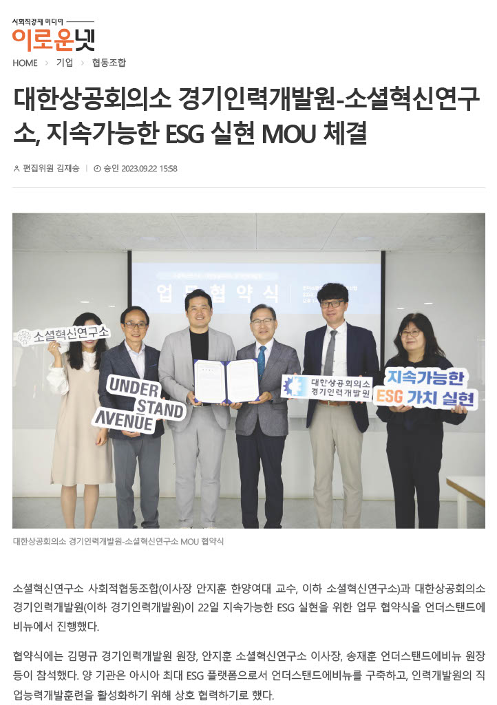 ¼Ò¼ÈÇõ½Å¿¬±¸¼Ò¿Í ´ëÇÑ»ó°øÈ¸ÀÇ¼Ò °æ±âÀη°³¹ß¿øÀÇ MOUü°á ±â»ç°¡