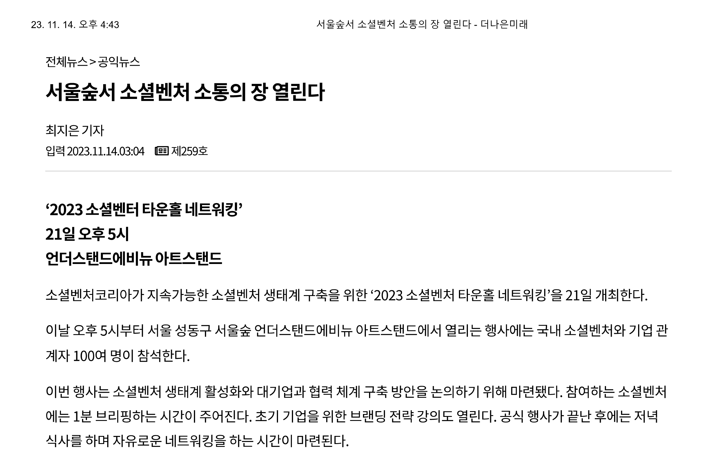 '¼Ò¼Èº¥Ã³ÄÚ¸®¾Æ'°¡ '¼Ò¼Èº¥Ã³ Ÿ¿îȦ ³×Æ®¿öÅ·'À» °³ÃÖÇÑ´Ù´Â ¾È³»°¡